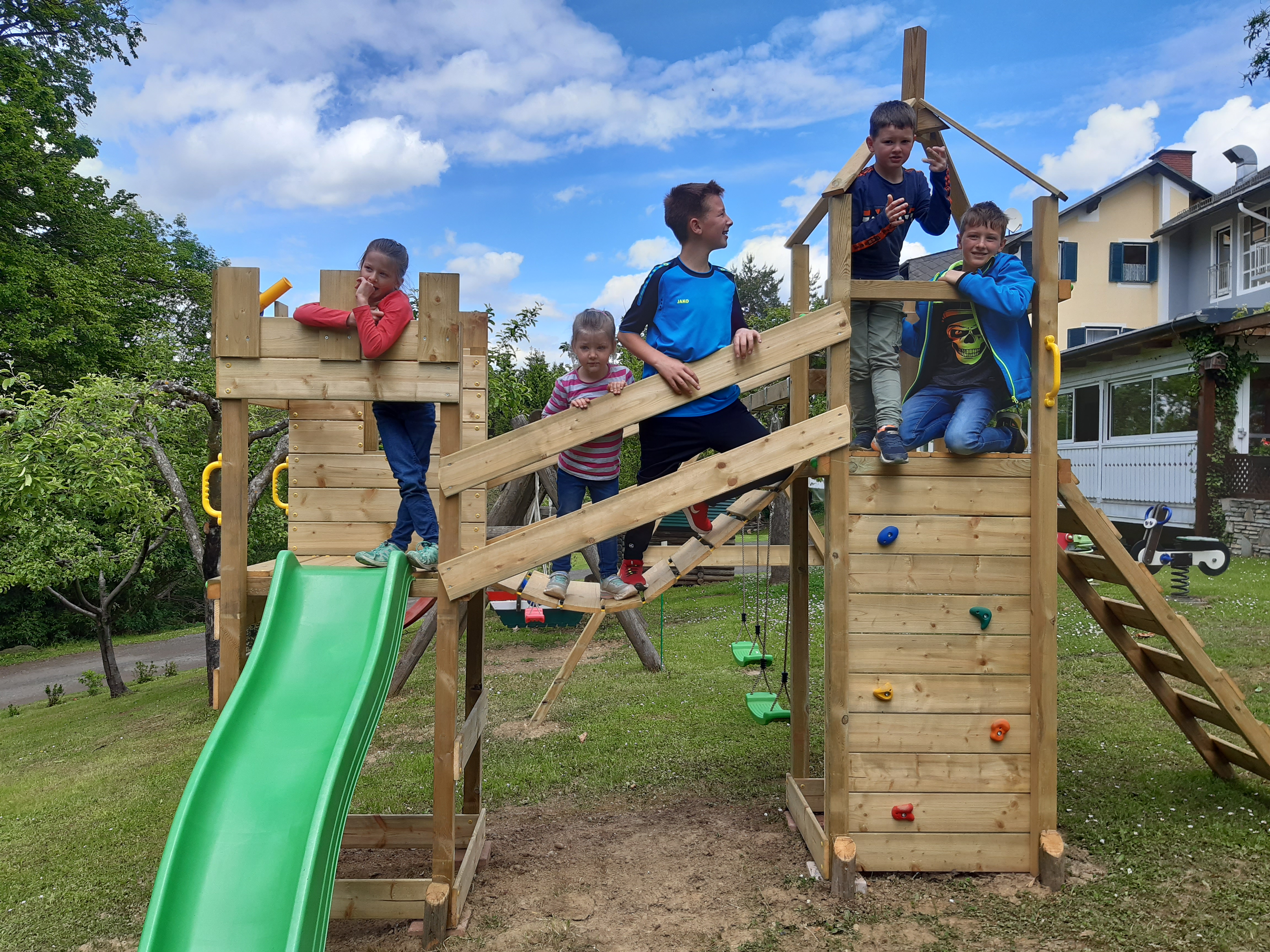 • weitläufiger, eingezäunter Kinderspielplatz mit Sandkasten, Schaukeln uvm.